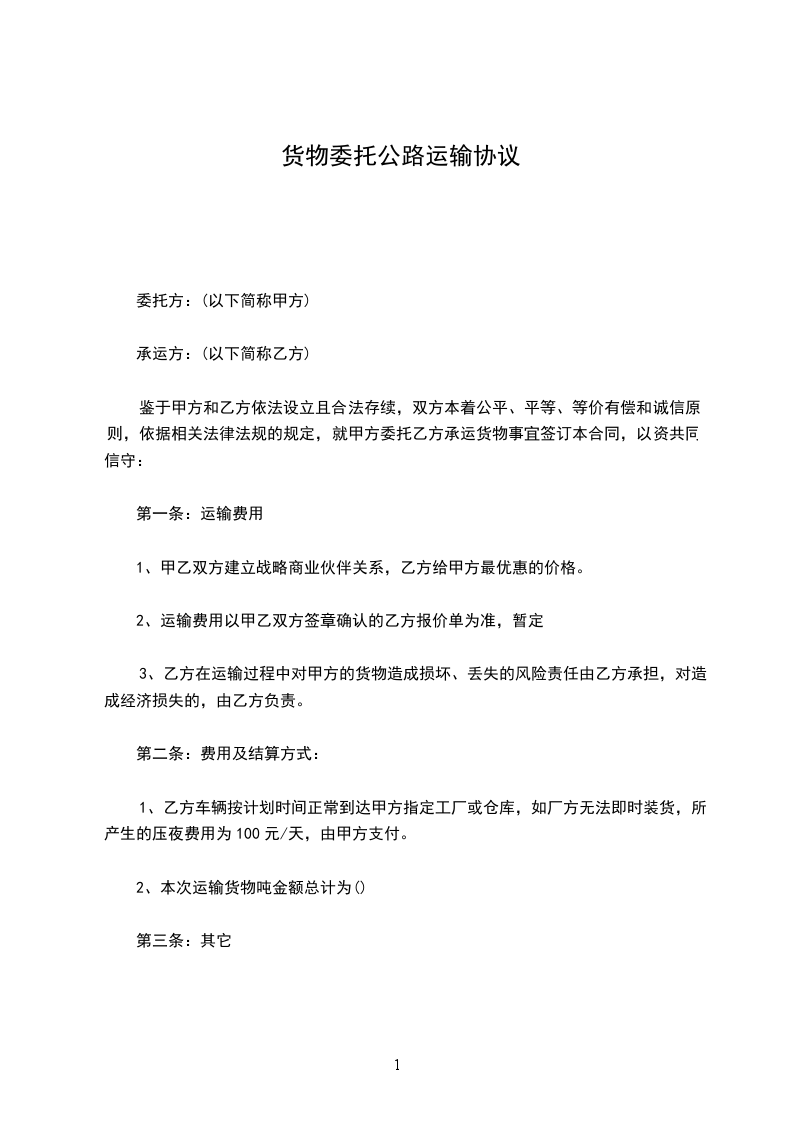 1、乙方车辆按计划时间正常到达甲方指定工厂或仓库,如厂方无法即时装货,所产生的压夜费用为100元/天,由甲方支付。
