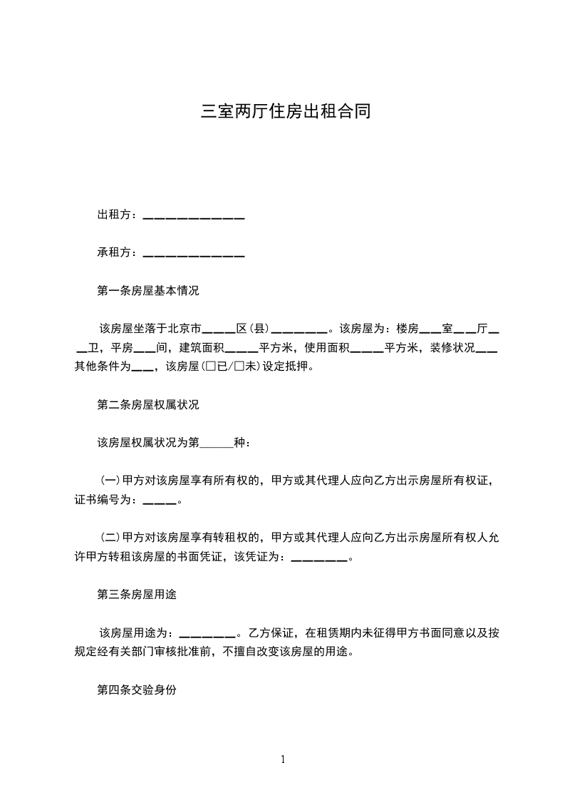 该房屋坐落于北京市▁▁▁区(县)▁▁▁▁▁。该房屋为:楼房▁▁室▁▁厅▁▁卫,平房▁▁间,建筑面积▁▁▁平方米,使用面积▁▁▁平方米,装修状况▁▁,其他条件为▁▁,该房屋(□已/□未)设定抵押。