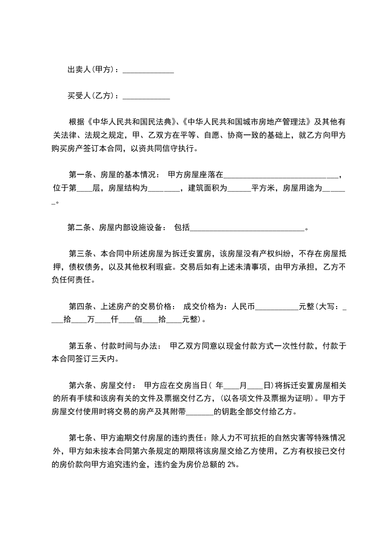五:甲方将户口于_____年_____月_____日前从该房屋迁出.