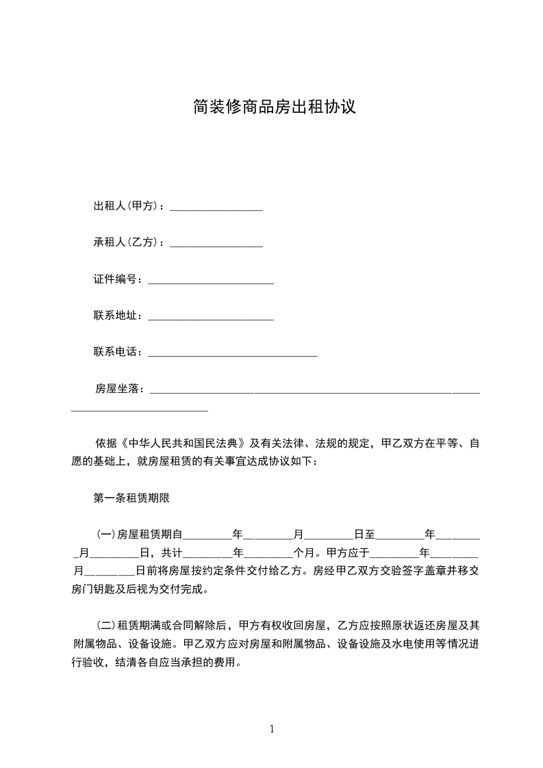 承租方(以下简称乙方):_____