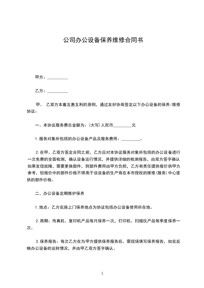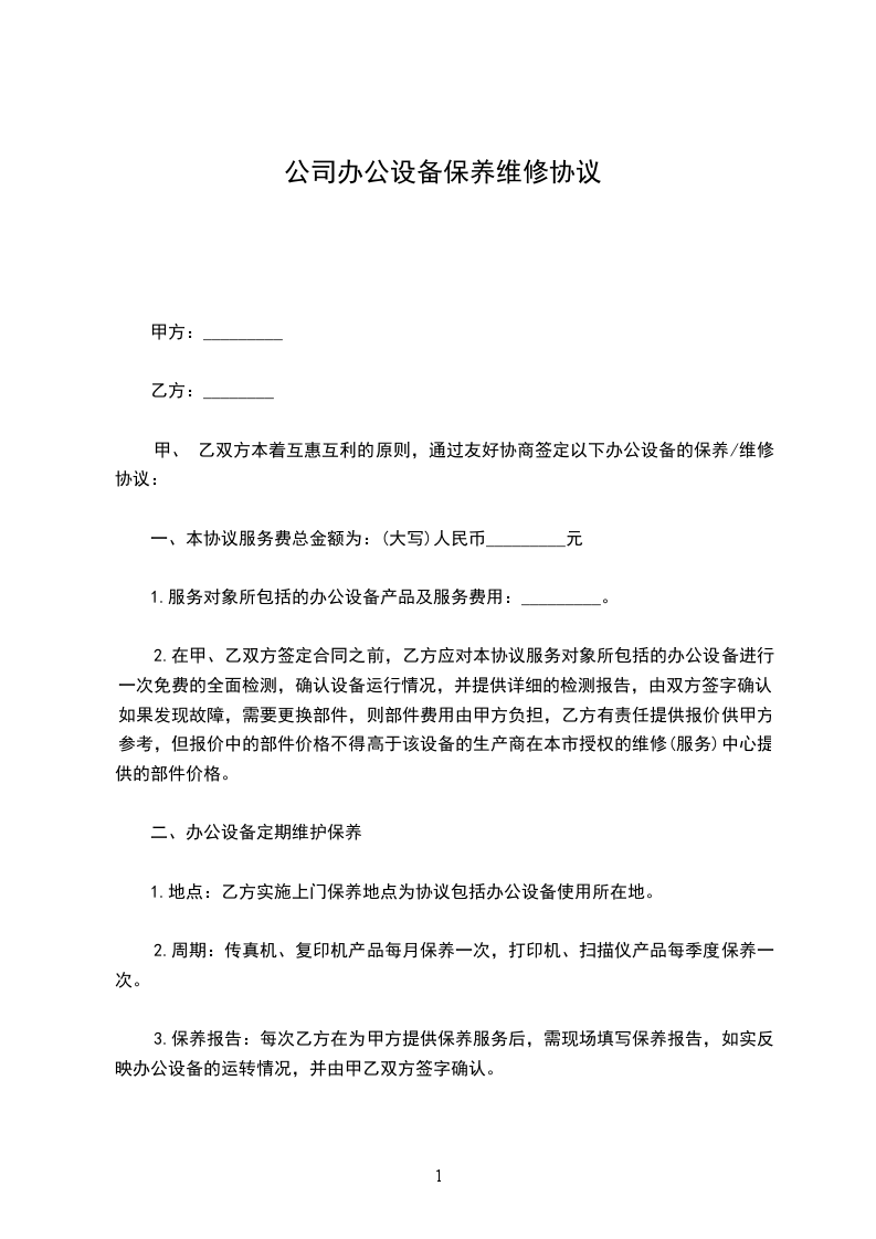 甲方现有办公设备一批,需进行维修保养,乙方愿为甲方提供长期维修、保养服务。