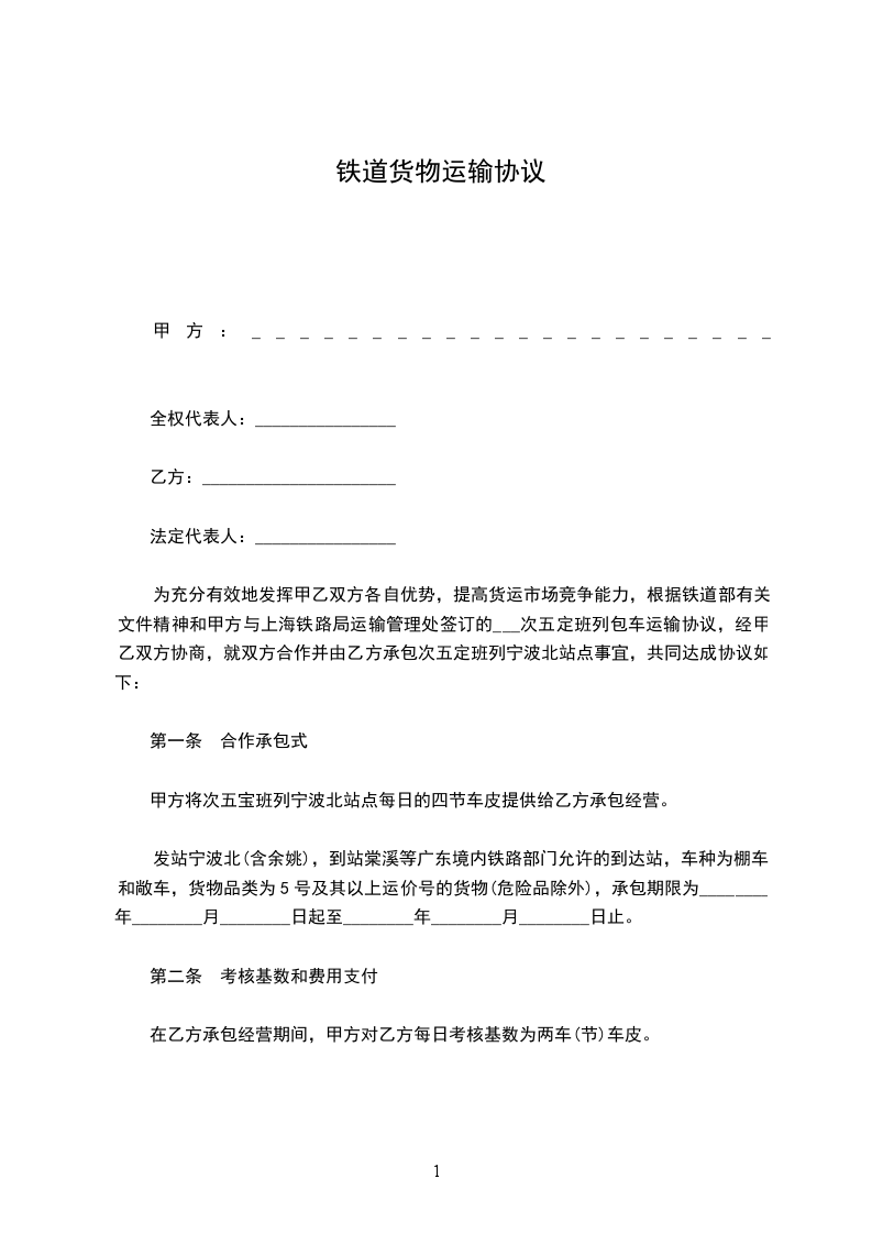 发站宁波北(含余姚),到站棠溪等广东境内铁路部门允许的到达站,车种为棚车和敞车,货物品类为5号及其以上运价号的货物(危险品除外),承包期限为________年________月________日起至________年________月________日止。