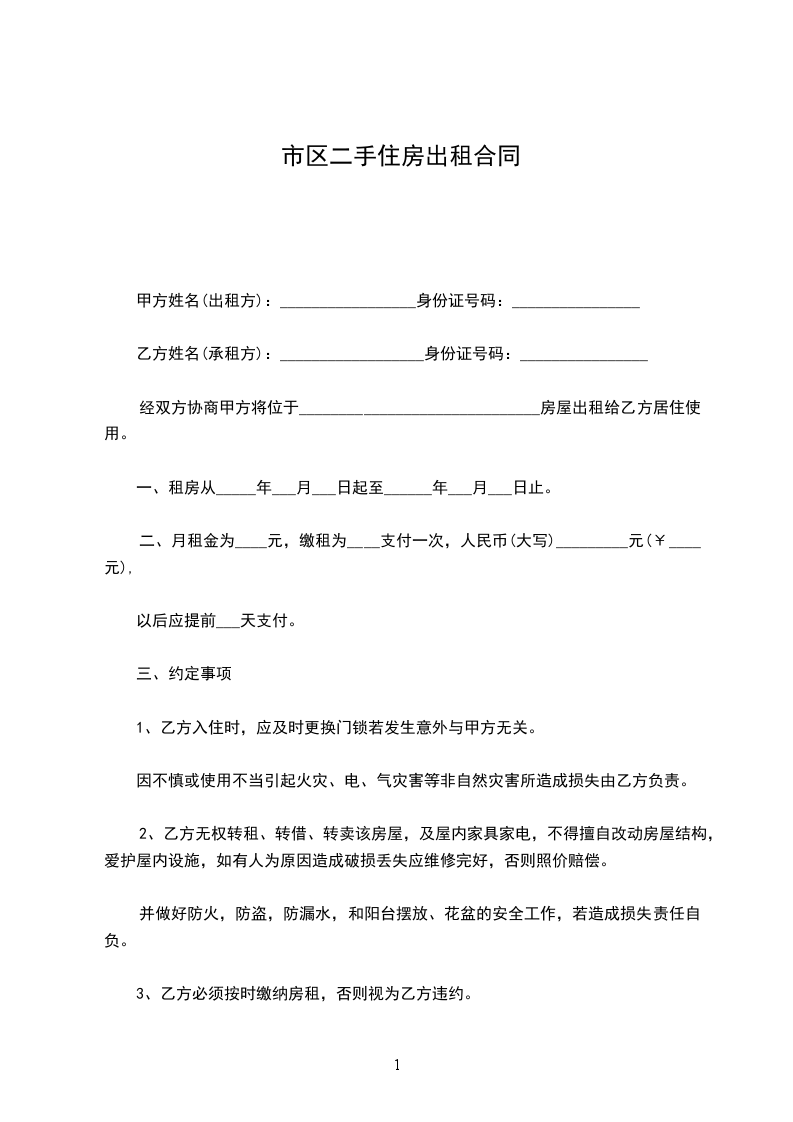 乙方姓名(承租方):__________________身份证号码:________________