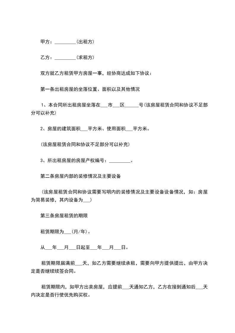 第三条房屋租赁的期限