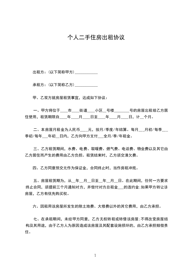 1、本合同所出租房屋坐落在___市___区______号(该房屋租赁合同和协议不足部分可以补充)