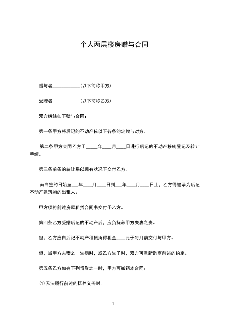 第一条甲方将后记的不动产依以下各条约定赠与对方。