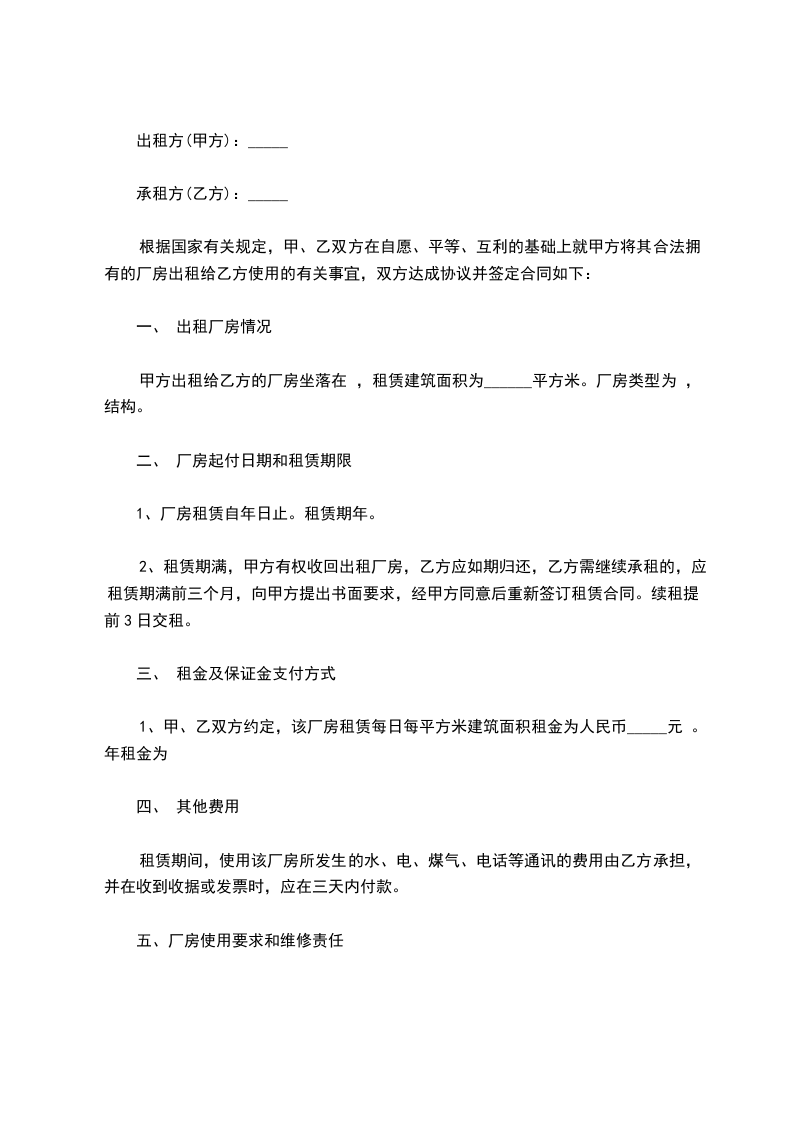 出租方:____(以下简称甲方)