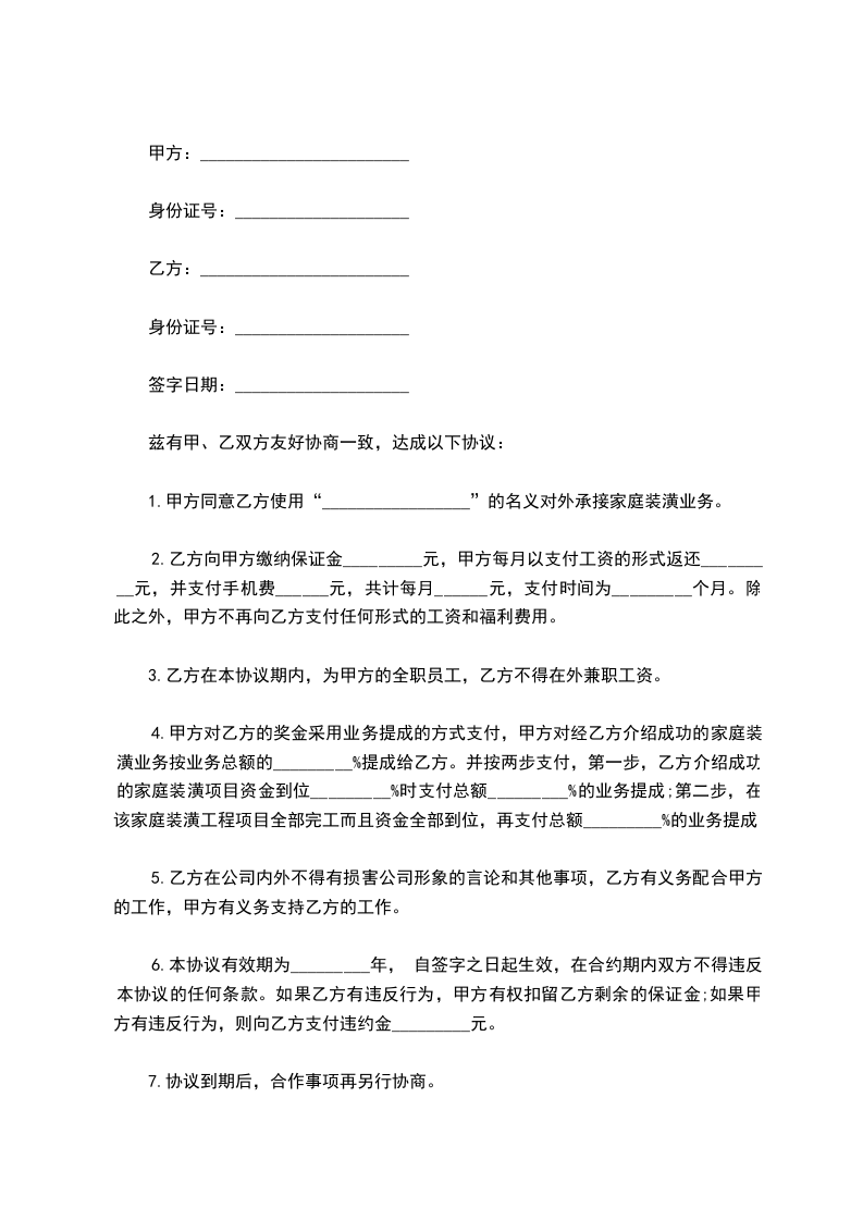 1.甲方同意乙方使用“_________________”的名义对外承接家庭装潢业务。