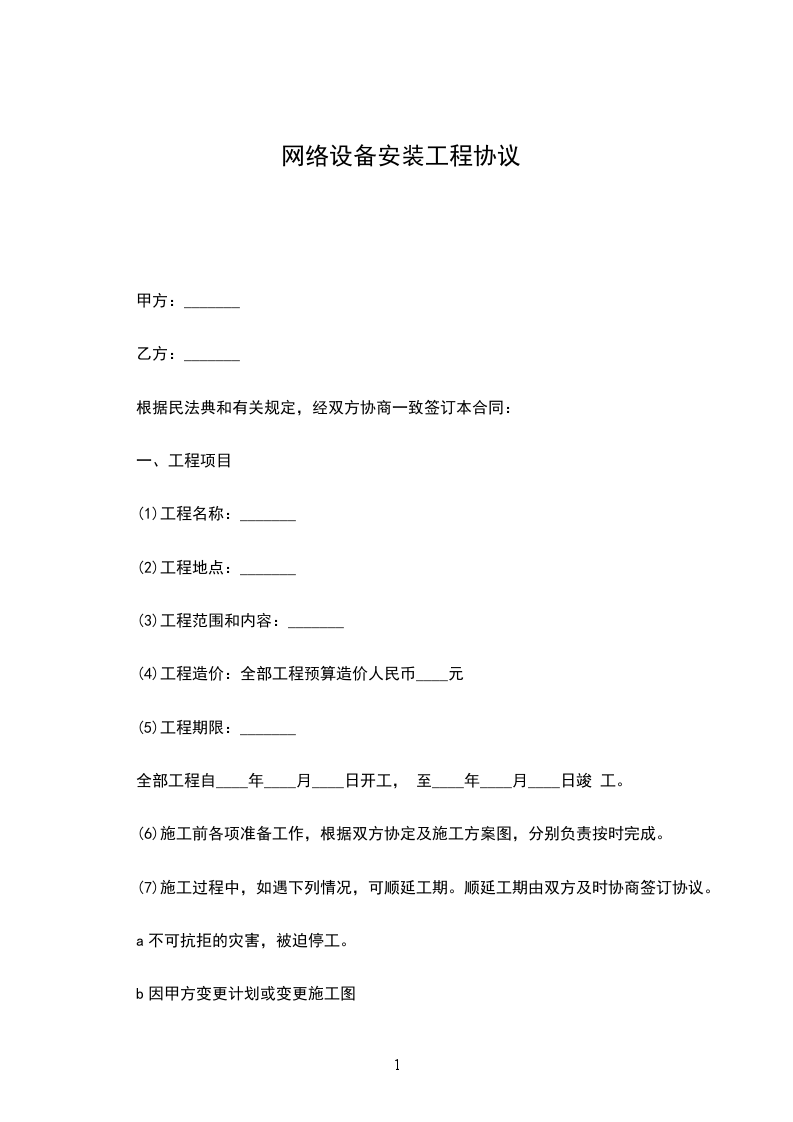 (4)工程造价:全部工程预算造价人民币____元