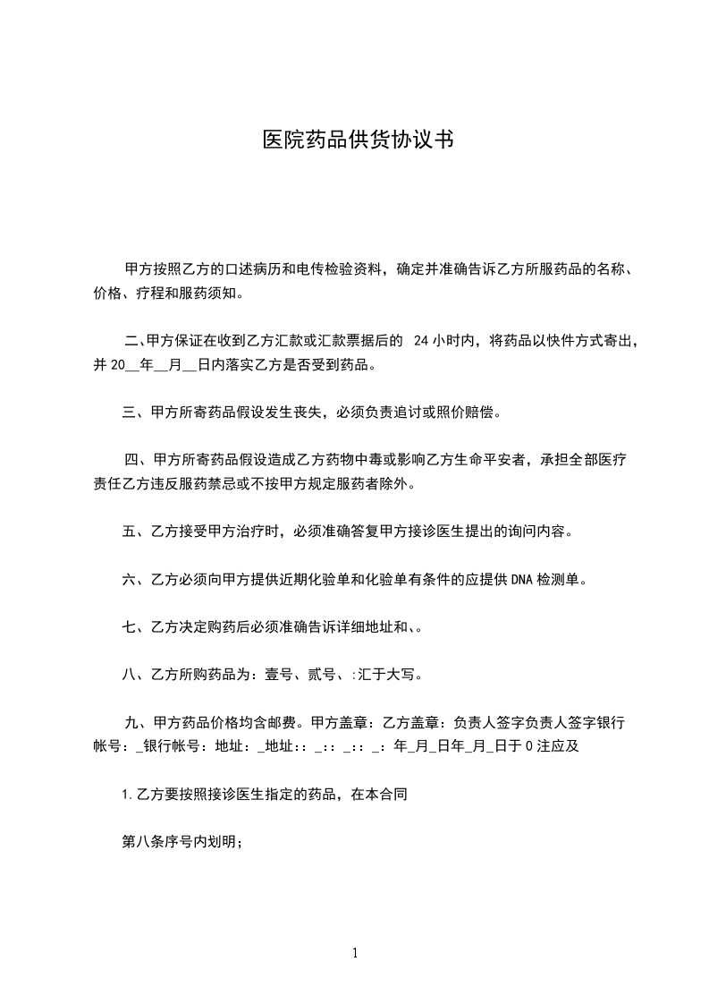 ②乙方必须及时保证甲方所需药品的供应,药品的批号、有效期不得低于12个月。