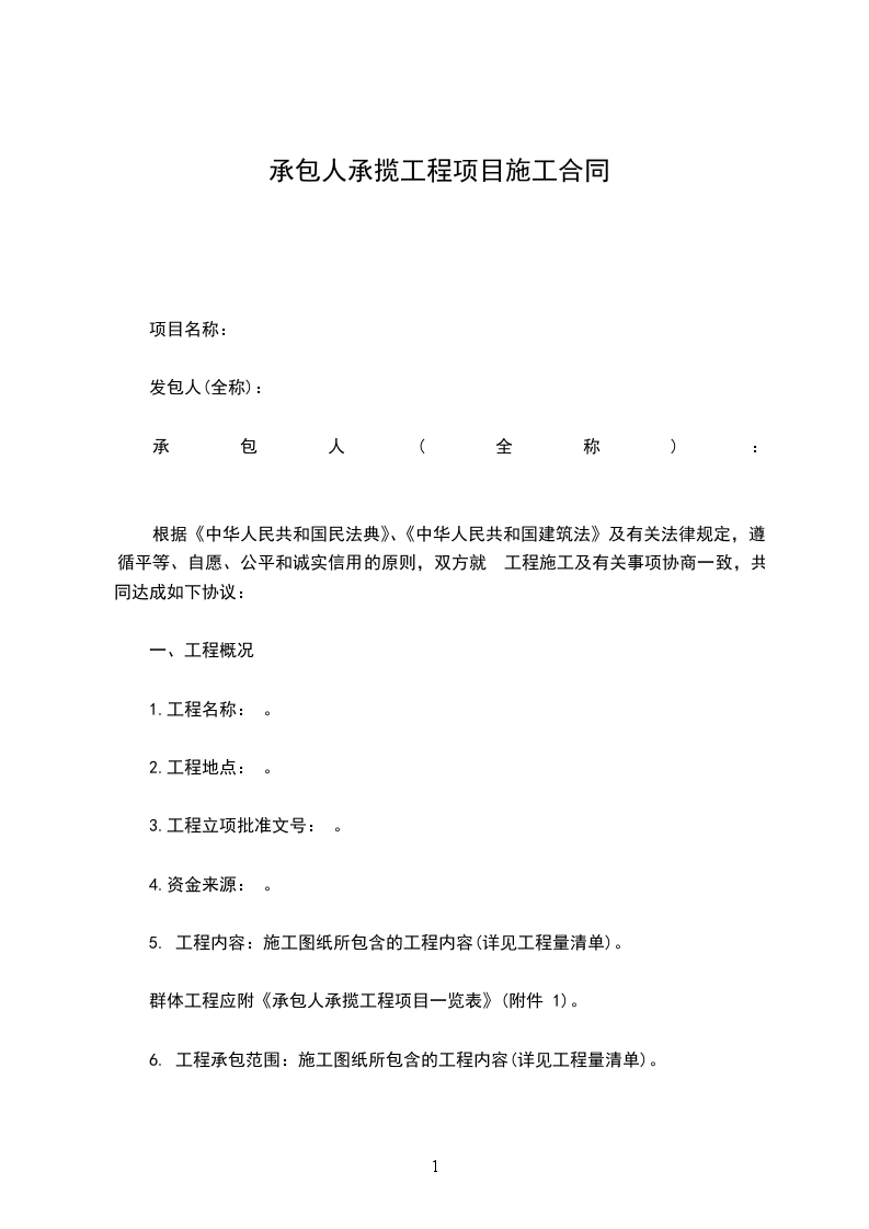 群体工程应附《承包人承揽工程项目一览表》(附件 1)。