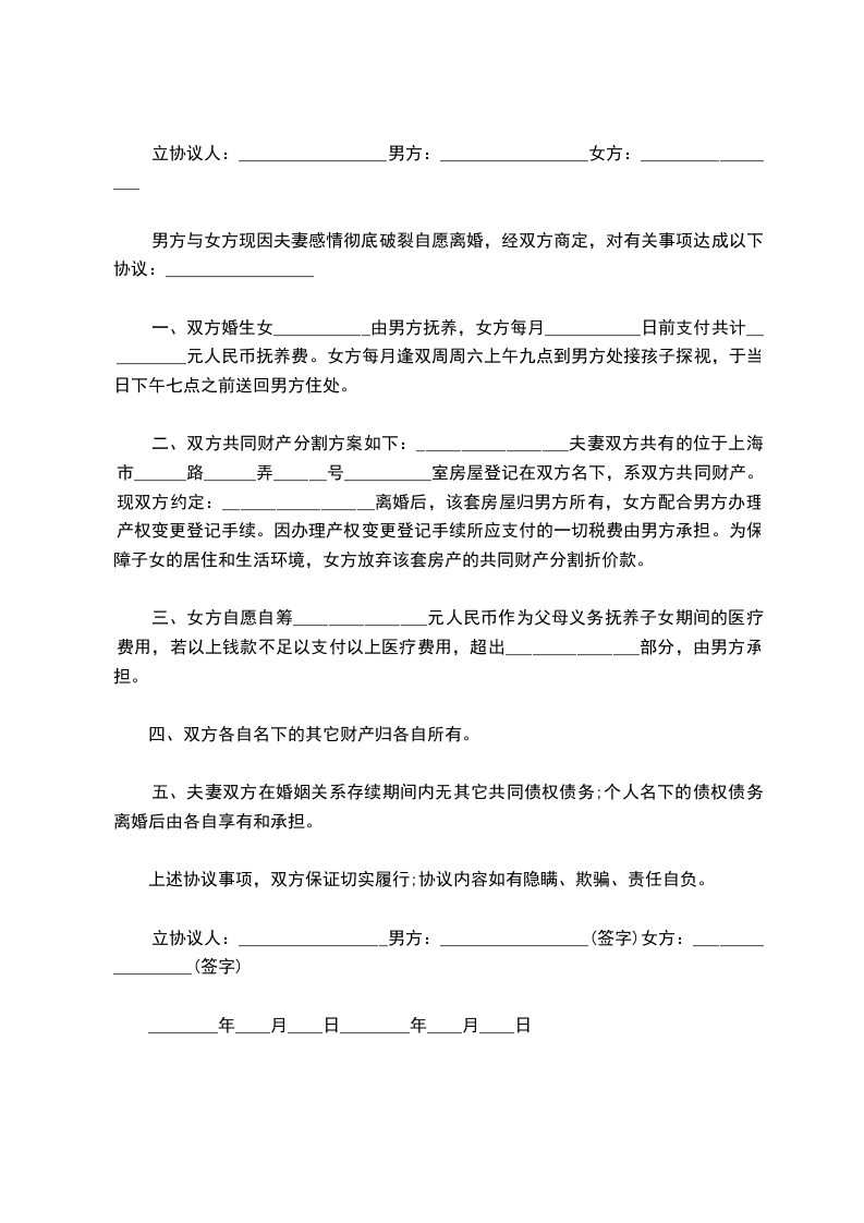 立协议人:_________________男方:_________________(签字)女方:_________________(签字)