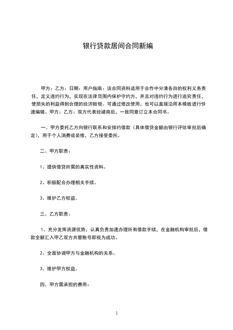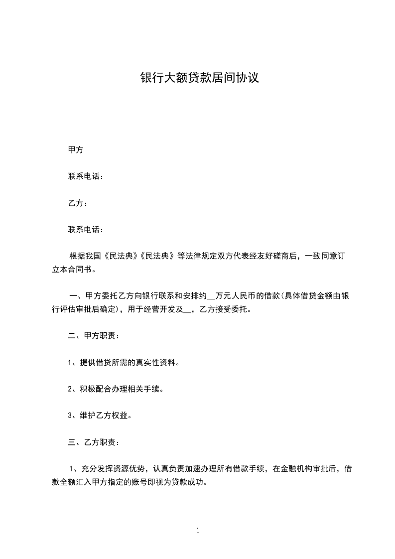 银行定期贷款居间合同