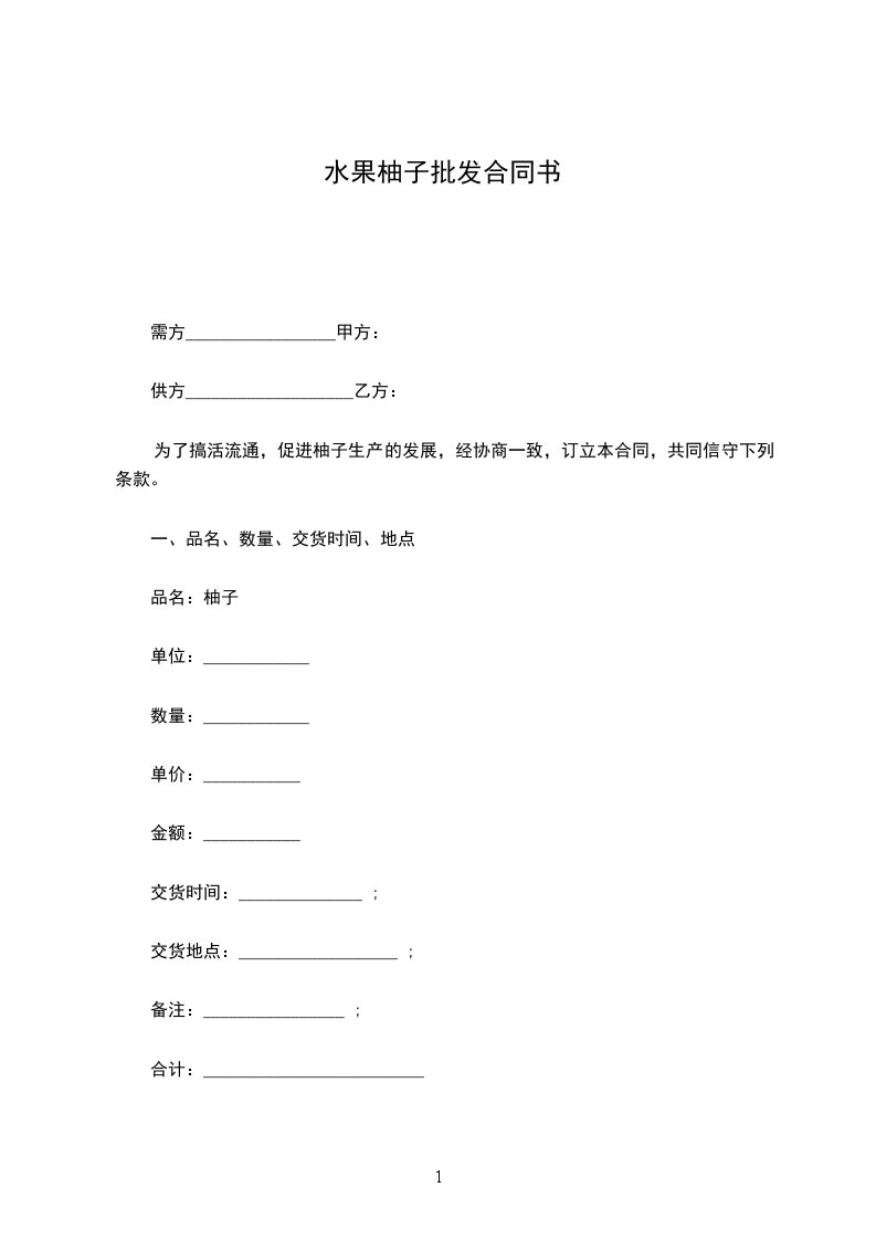 为了搞活流通,促进柚子生产的发展,经协商一致,订立本合同,共同信守下列条款。
