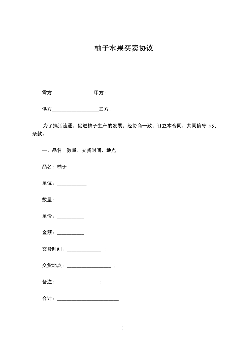 柚子水果购销协议