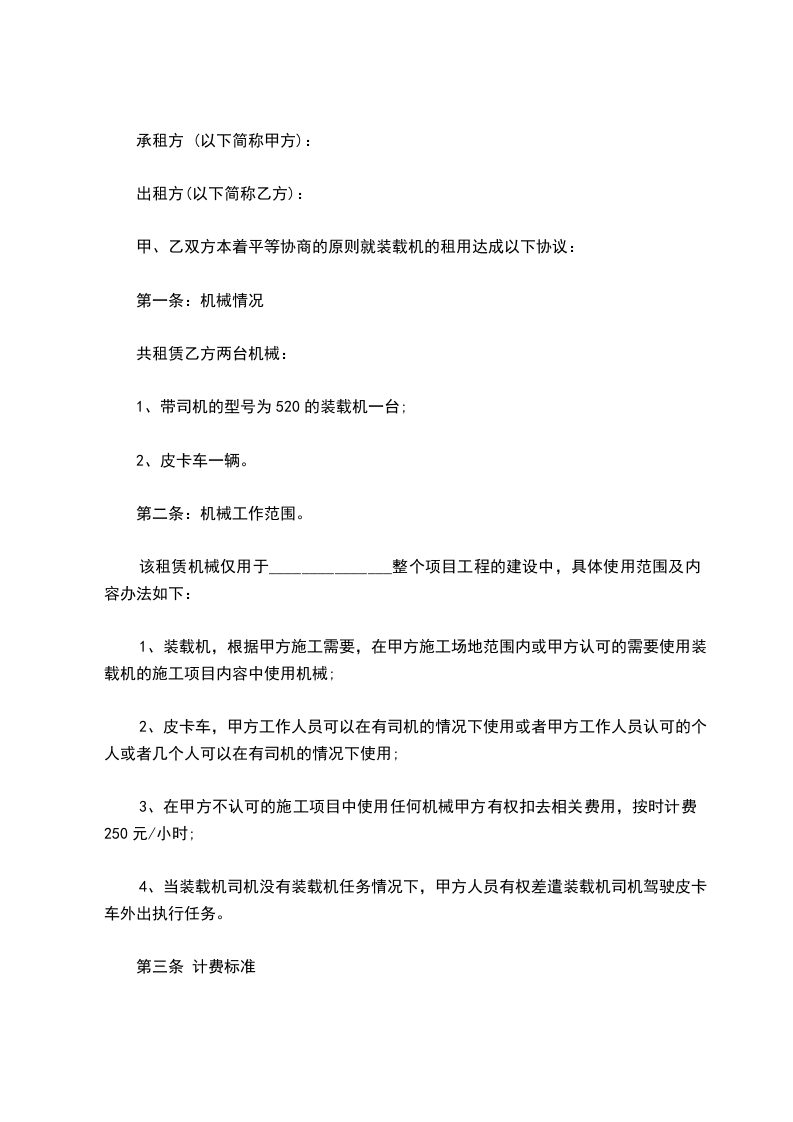 甲、乙双方本着平等协商的原则就装载机的租用达成以下协议: