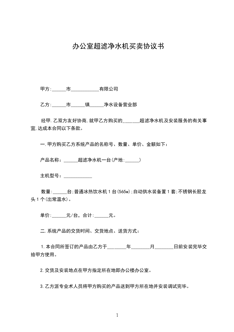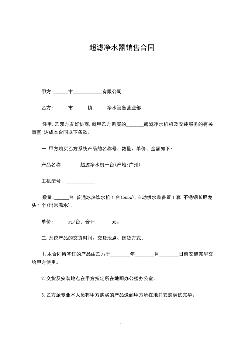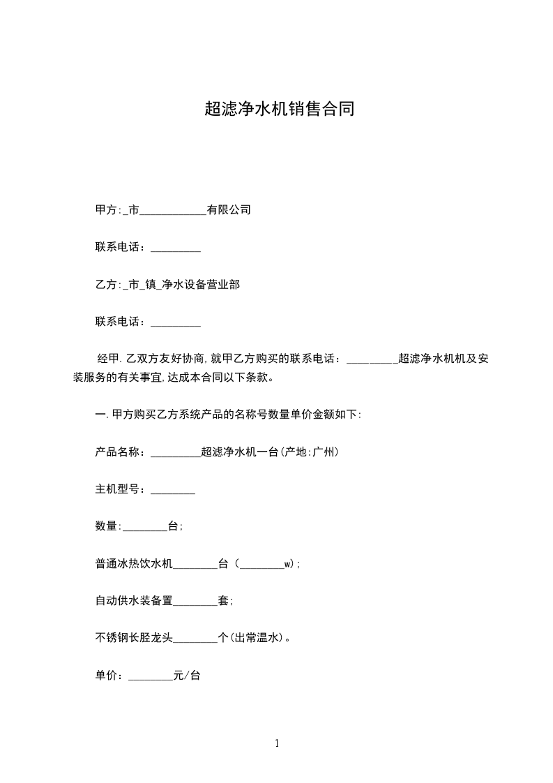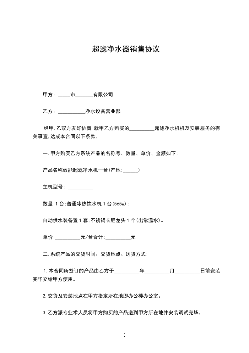 经甲、乙双方友好协商,就甲乙方购买的 _________ 超滤净水机及安装、服务的有关事宜,达成本合同以下条款。
