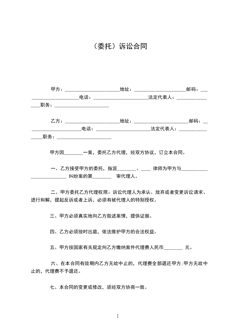 甲方因________一案,委托乙方代理,经双方协议,订立本合同。