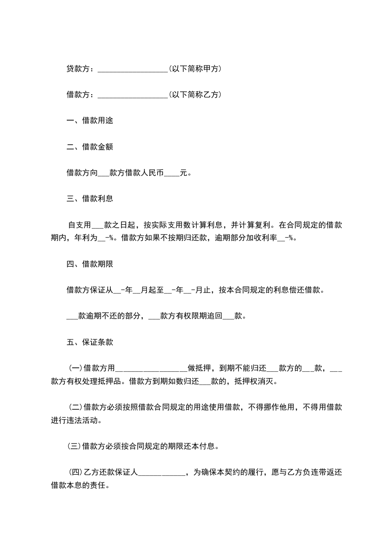 (一)借款方用__________________做抵押,到期不能归还___款方的___款,___款方有权处理抵押品。借款方到期如数归还___款的,抵押权消灭。