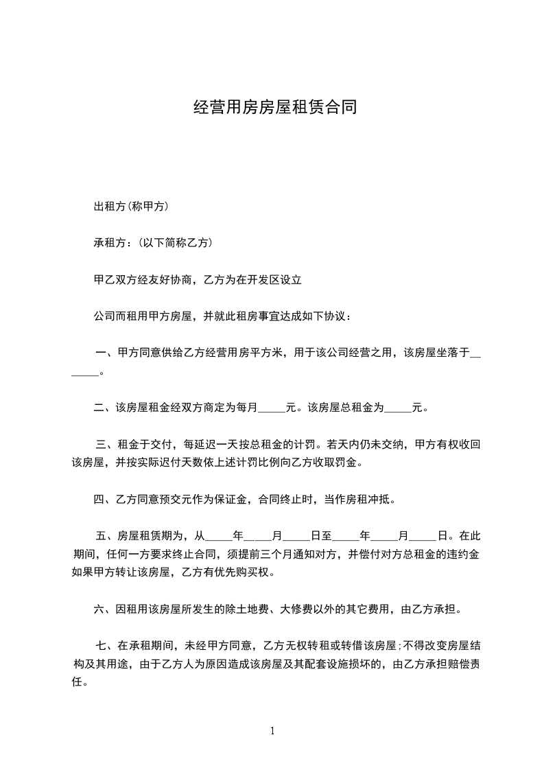 一、甲方同意供给乙方经营用房 平方米,用于该公司经营之用,该房屋坐落于 。