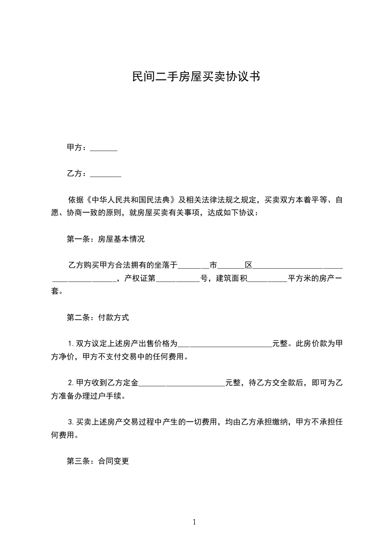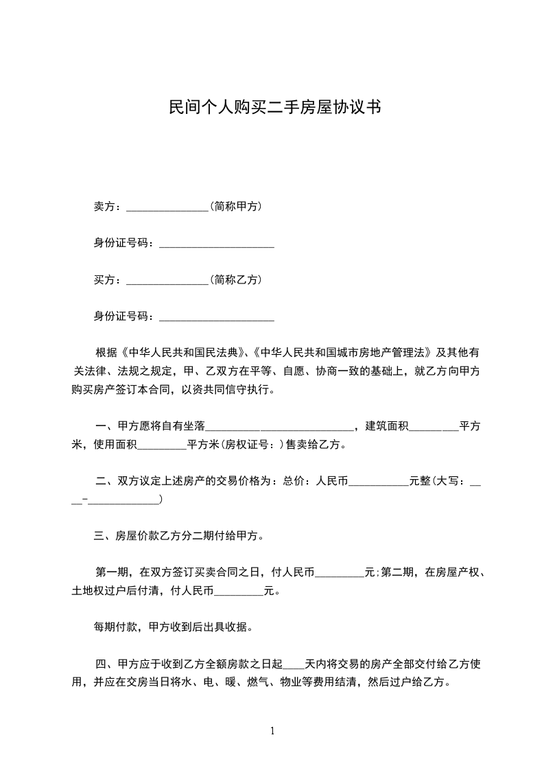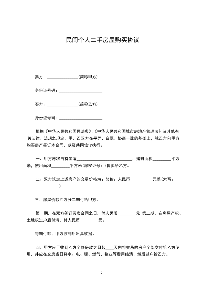 一、甲方愿将自有坐落___________________________,建筑面积_________平方米,使用面积_________平方米(房权证号:)售卖给乙方。