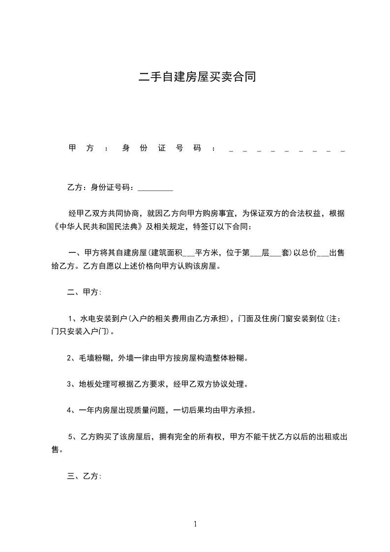卖方(甲方)____________ 身份证号码:____________________