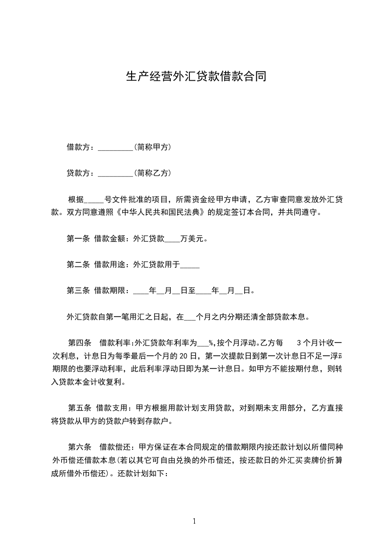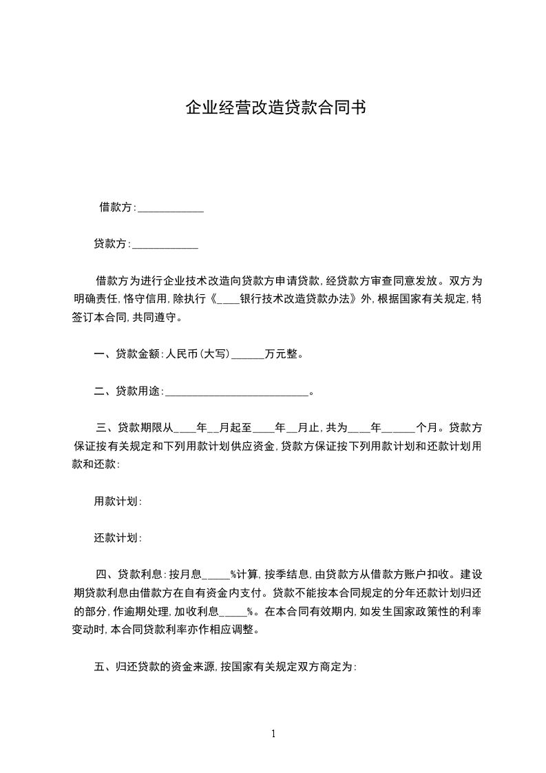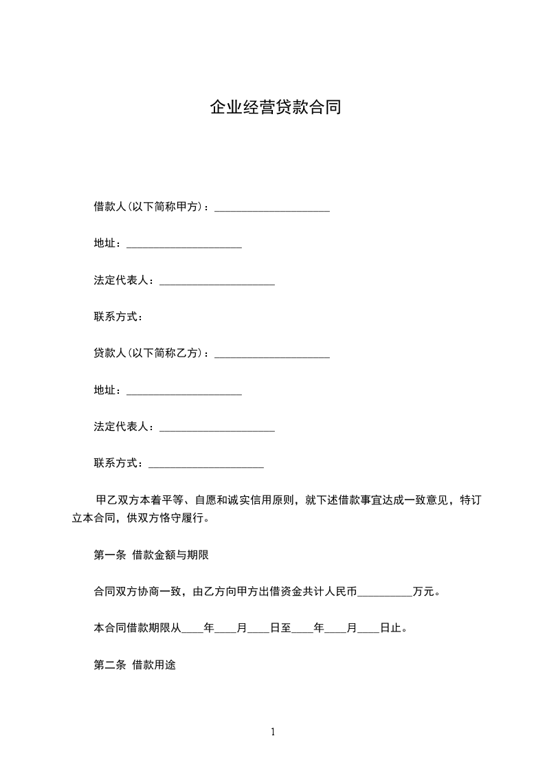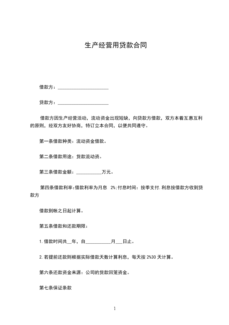 企业生产经营贷款协议