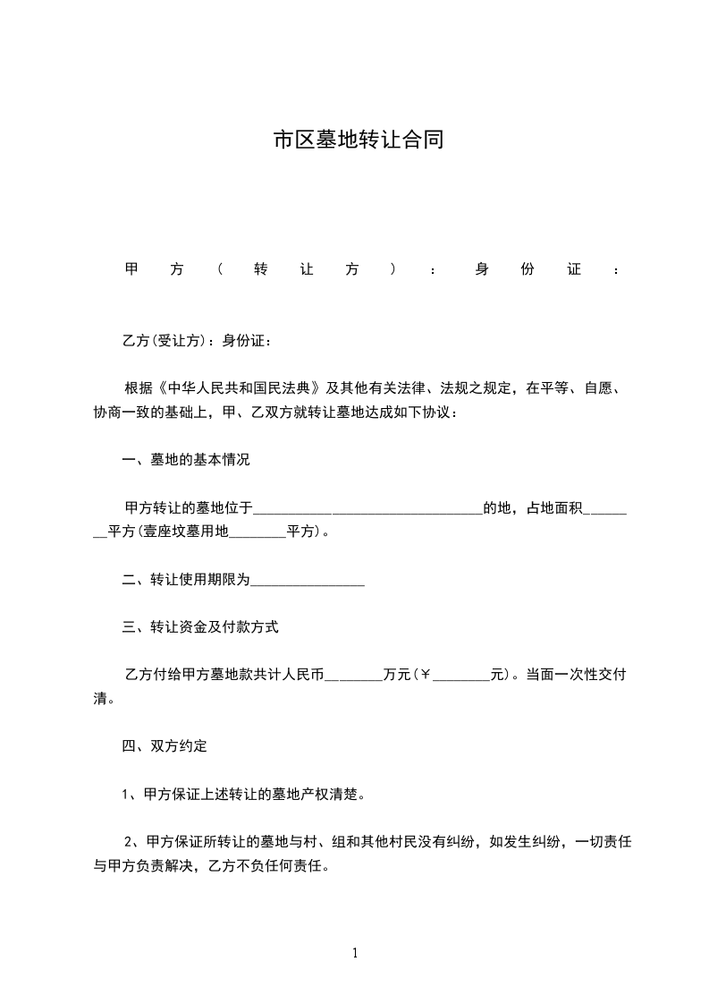 根据《中华人民共和国民法典》及其他有关法律、法规之规定,在平等、自愿、协商一致的基础上,甲、乙双方就转让墓地达成如下协议: