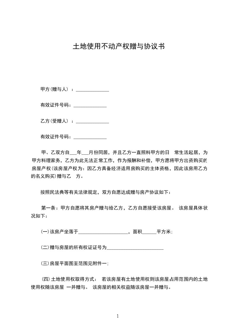 (四)土地使用权取得方式: 若该房屋有土地使用权则该房屋占用范围内的土地使用权随该房屋 一并赠与。 该房屋的相关权益随该房屋一并赠与。