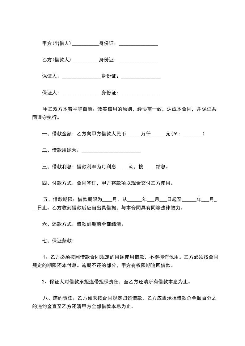 一、借款金额:乙方向甲方借款人民币______万仟______元(¥:________)