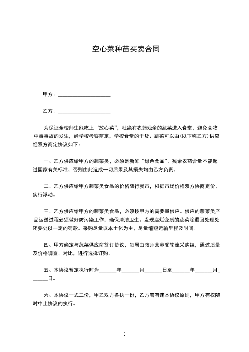 二、甲方将长年供应乙方主要有:空心菜、大白菜、等,