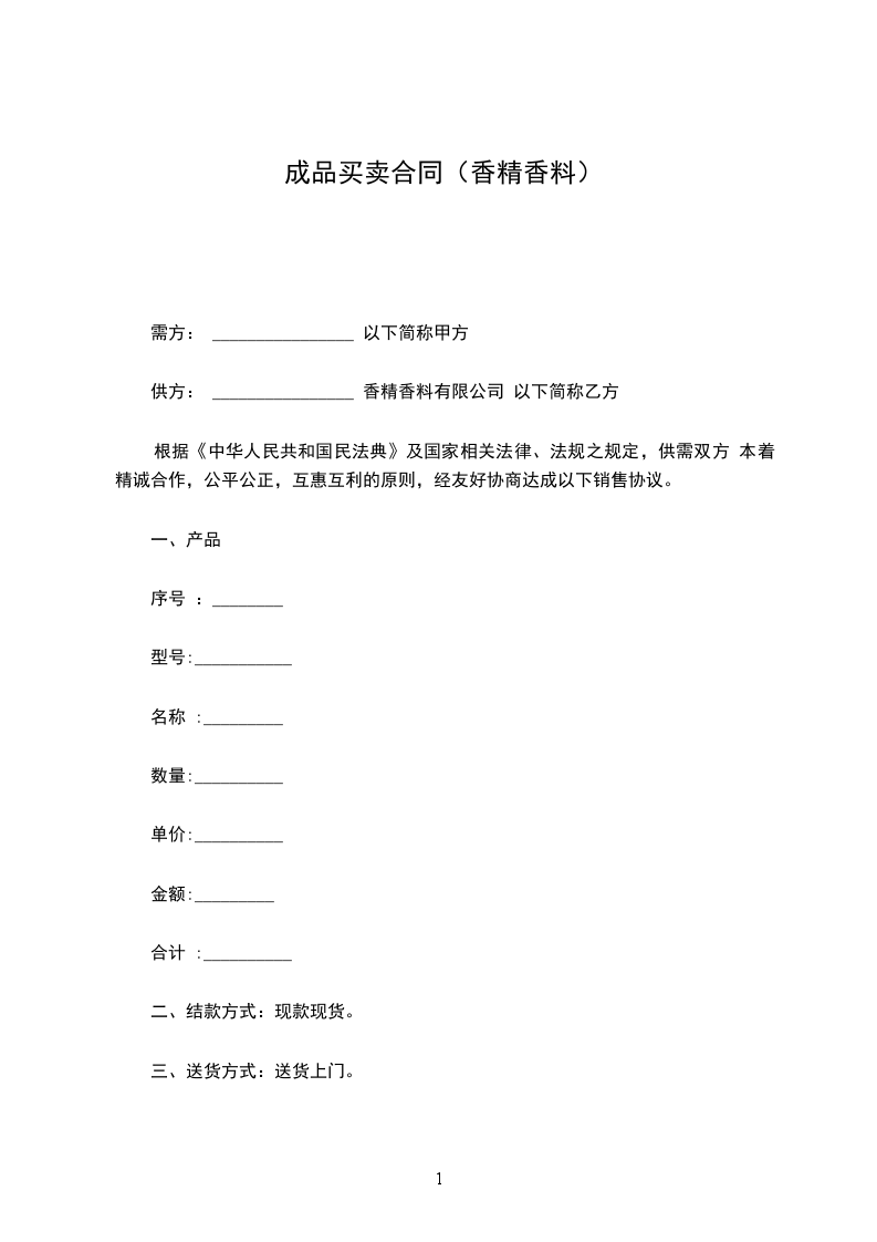 供方: ________________ 香精香料有限公司 以下简称乙方