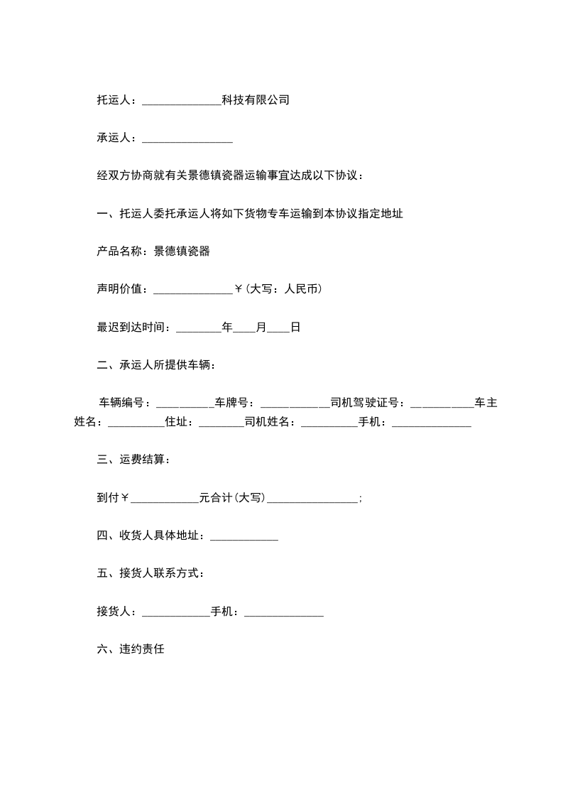 经双方协商就有关景德镇瓷器运输事宜达成以下协议: