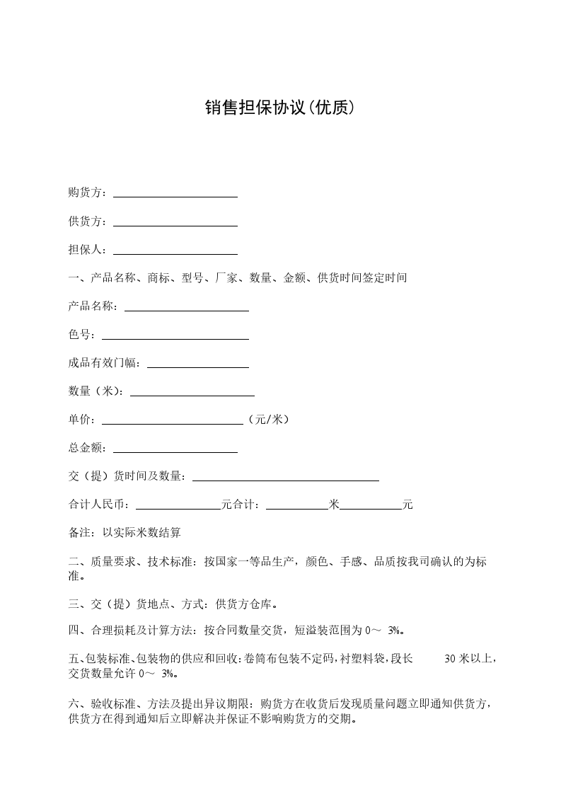 一、丙方为甲方履行主合同的义务,即支付乙方货款提供担保。保证金额为甲方应向乙方支付而末支付的款项,保证期间主合同债务履行期限届满之日起壹年。
