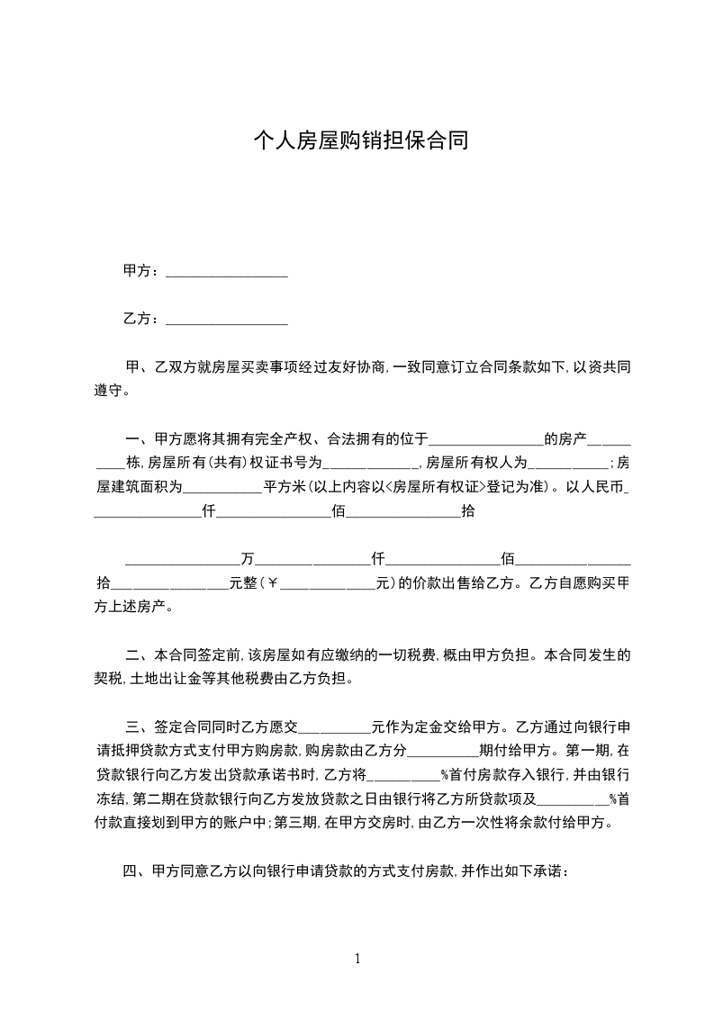 卖方: (以下简称乙方) 住所: