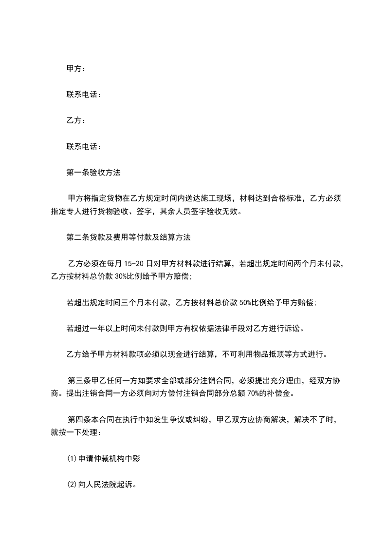 1、建材产品经专业机构检测不符合国家标准或合同约定质量标准的,卖方应无条件换、退换,或赔偿买方由此受到的损失。