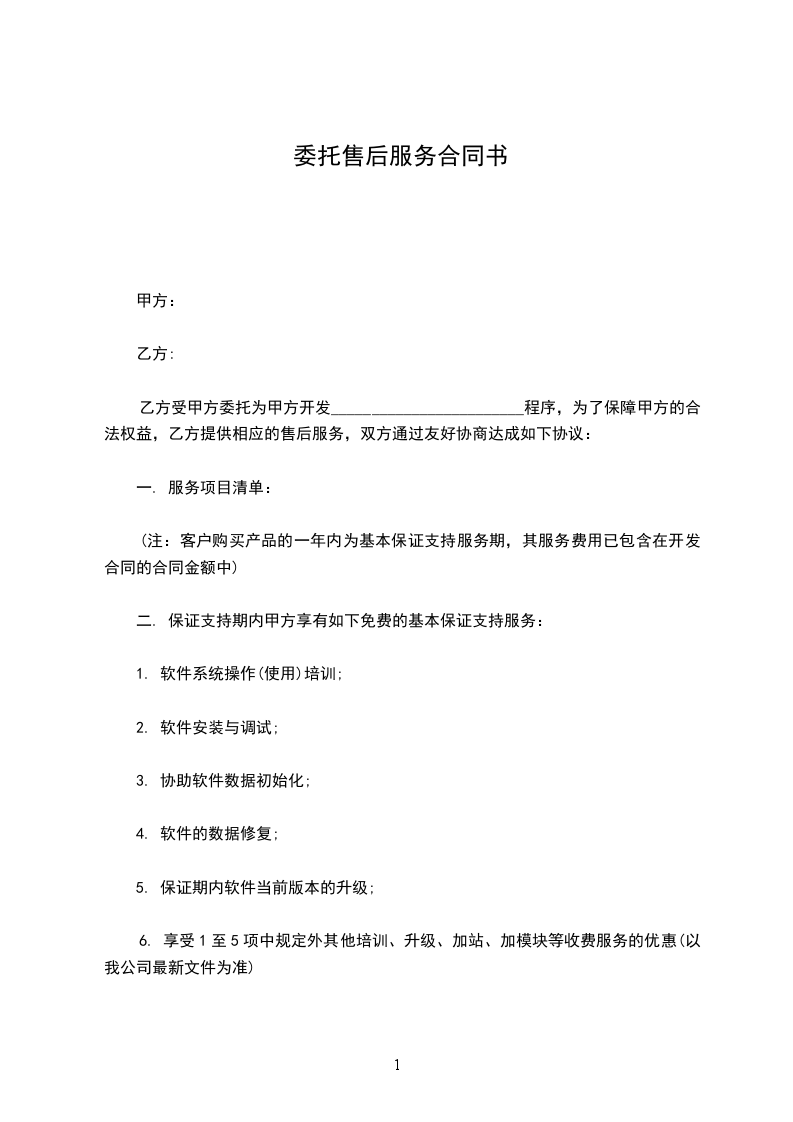 乙方受甲方委托为甲方开发________________________程序,为了保障甲方的合法权益,乙方提供相应的售后服务,双方通过友好协商达成如下协议: