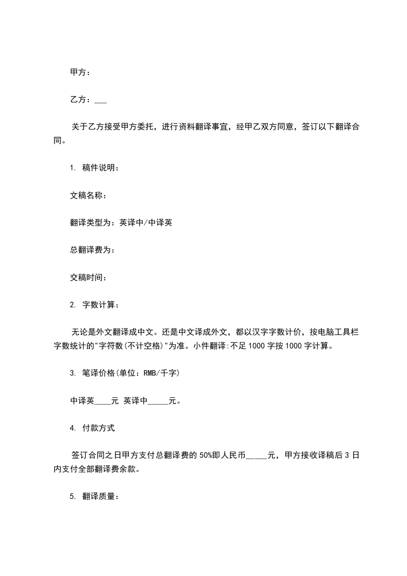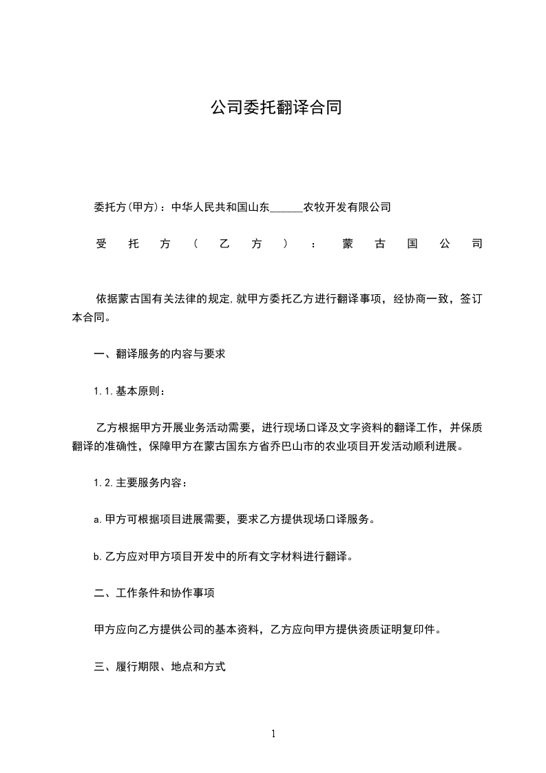 1、 甲方委托乙方提供1名 口译员,担任 翻译工作,乙方接受甲方委托。