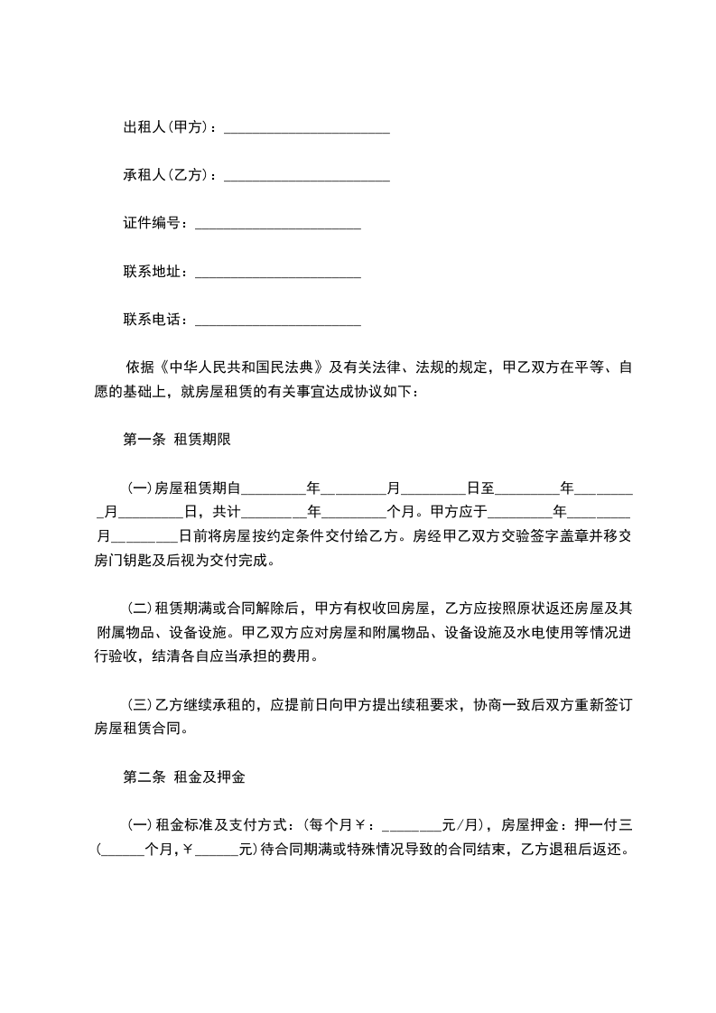 1、甲方____年____月____日至____年____月____日将(____________楼)门市房屋租给乙方,租期为三年,租金每年为 万元整( 万元整),三年为 万元(万元整)乙方交给甲方的租金为一年一交,乙方应在每年的____月____日前将租金交给甲方,乙方不得拖延租金,如乙方不交租金甲方有权将所出租的房屋收回;