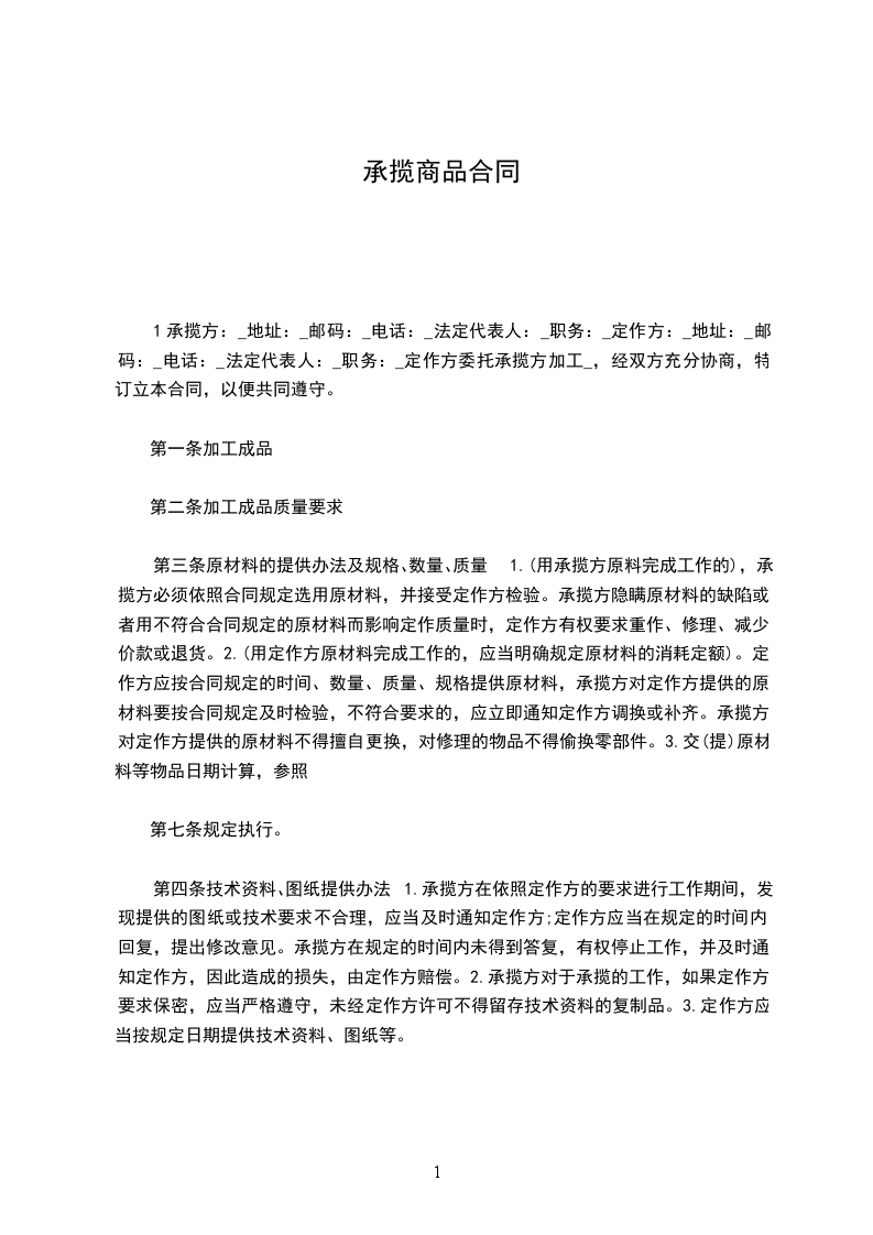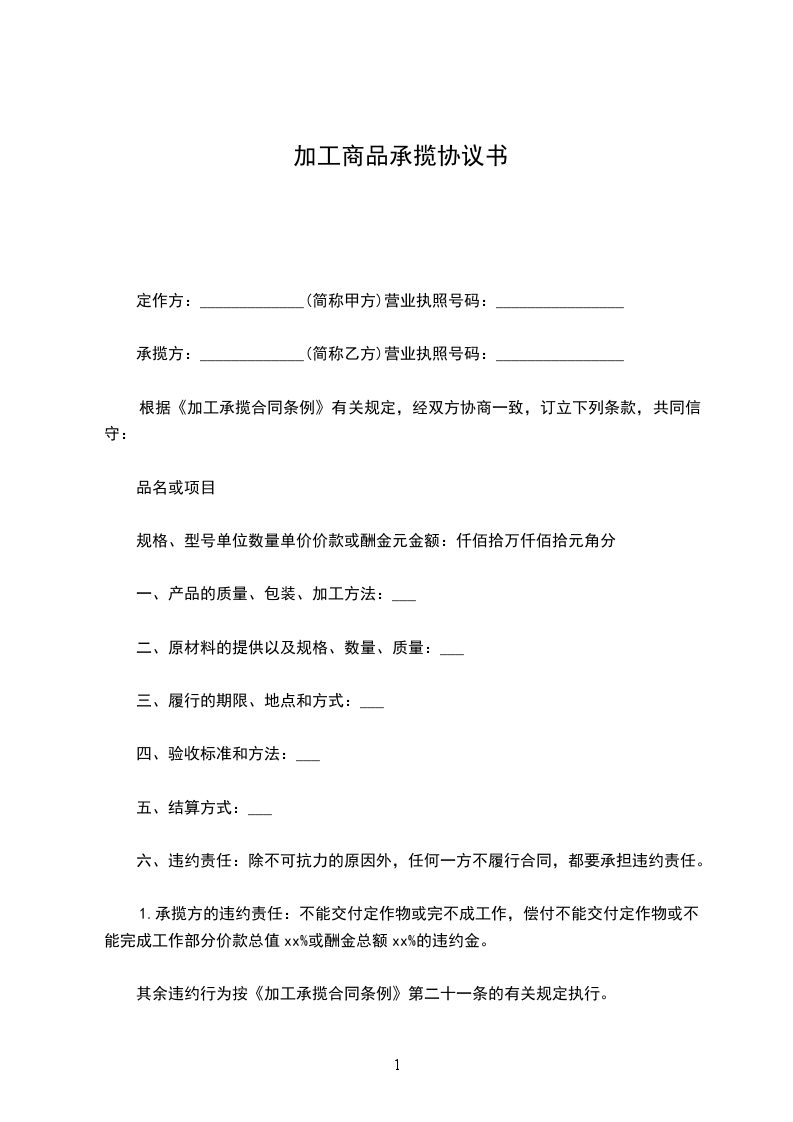 定作方:_____________(简称甲方)营业执照号码:________________