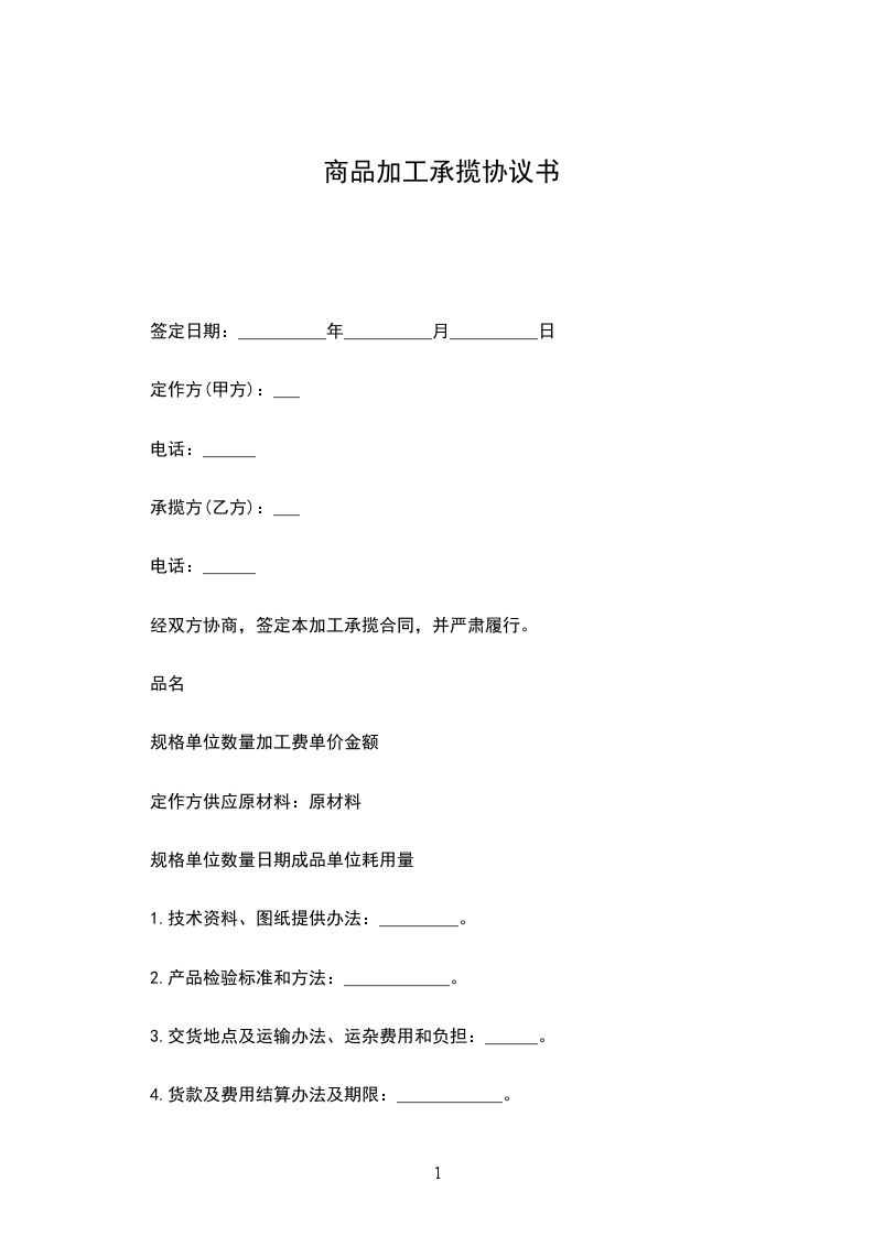 一、产品的质量、包装、加工方法:___