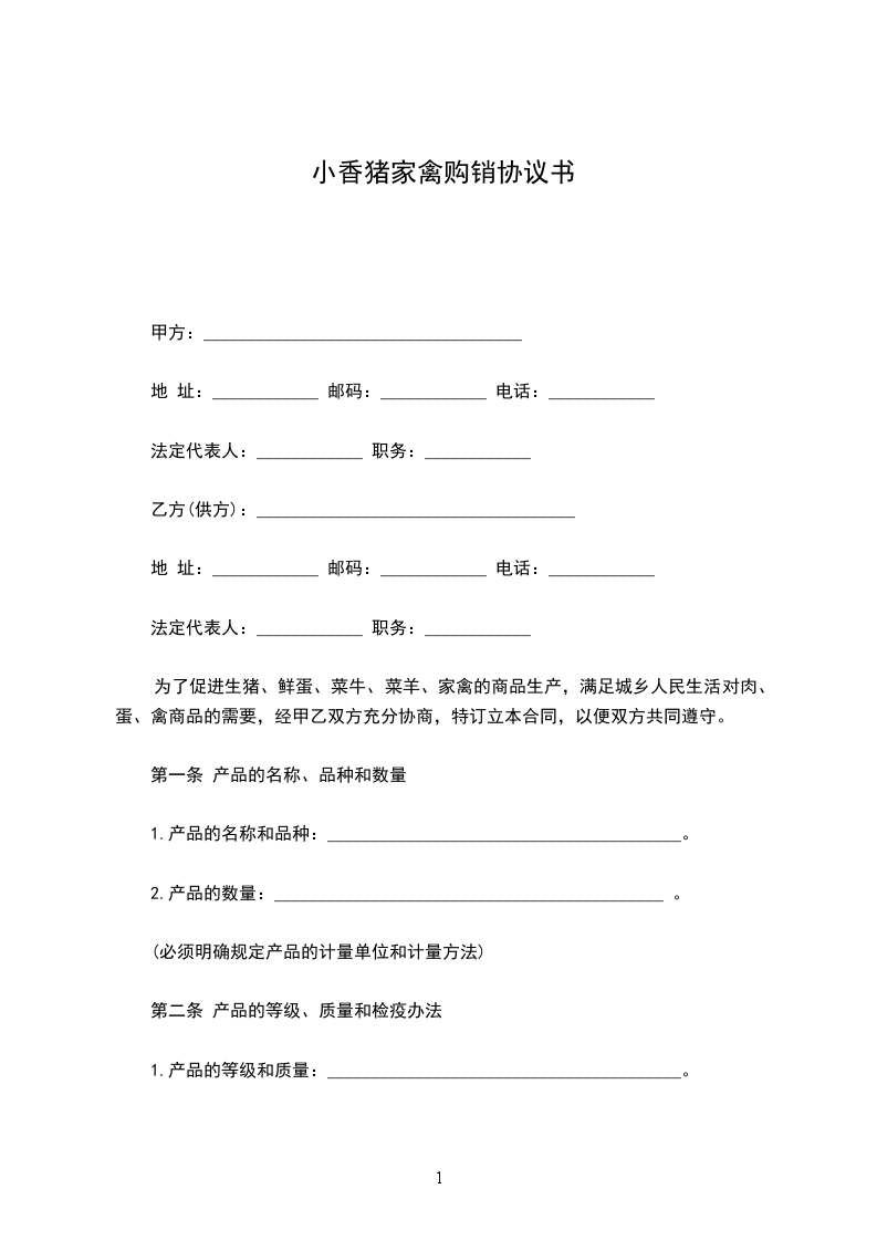 为了促进生猪、鲜蛋、菜牛、菜羊、家禽的商品生产,满足城乡人民生活对肉、蛋、禽商品的需要,经甲乙双方充分协商,特订立本合同,以便双方共同遵守。