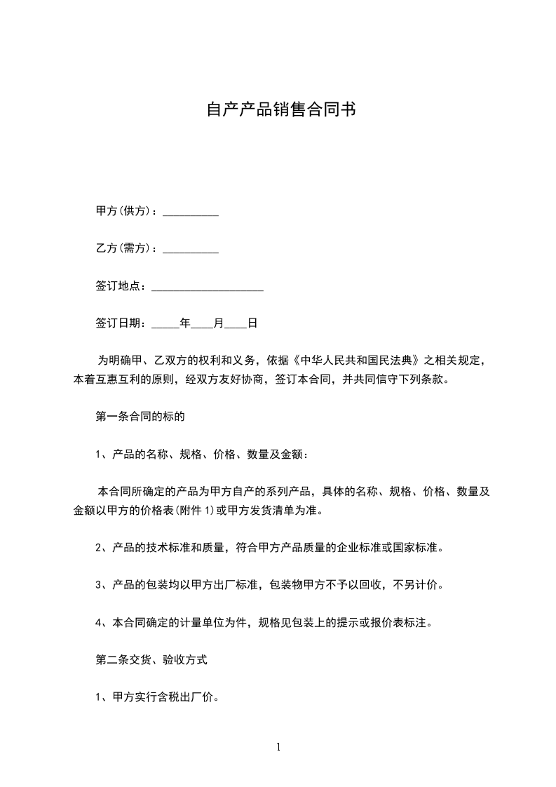 十四、 本购合同壹式_________份,供方、需方各执_________份为凭。