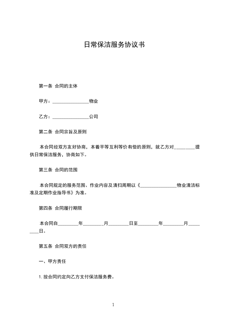 本合同经双方友好协商,本着平等互利等价有偿的原则,就乙方对_________提供日常保洁服务,协商如下。