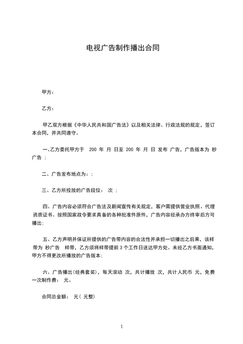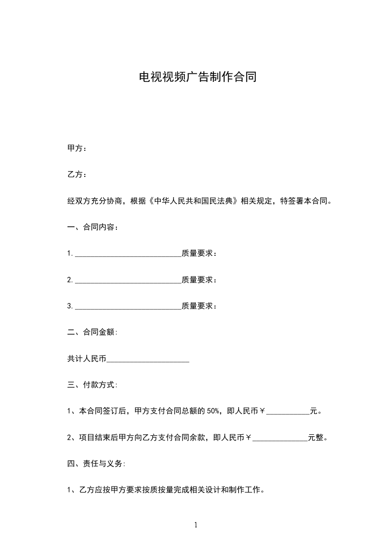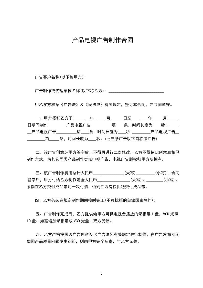 一、甲方委托乙方拍摄、制作电视广告(专题)片,成片长度,并为甲方提供母带_盘(乙方代保管干燥)dvd/vcd光盘碟。