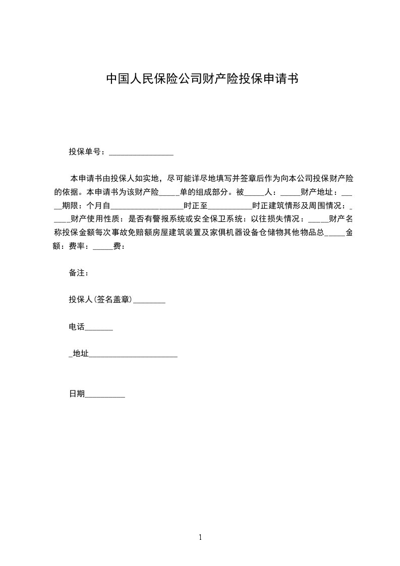本申请书由投保人如实和尽可能详尽地填写并签章后作为向承保人投保财产一切险的依据。本申请书为该财产一切险保险单的组成部分。
