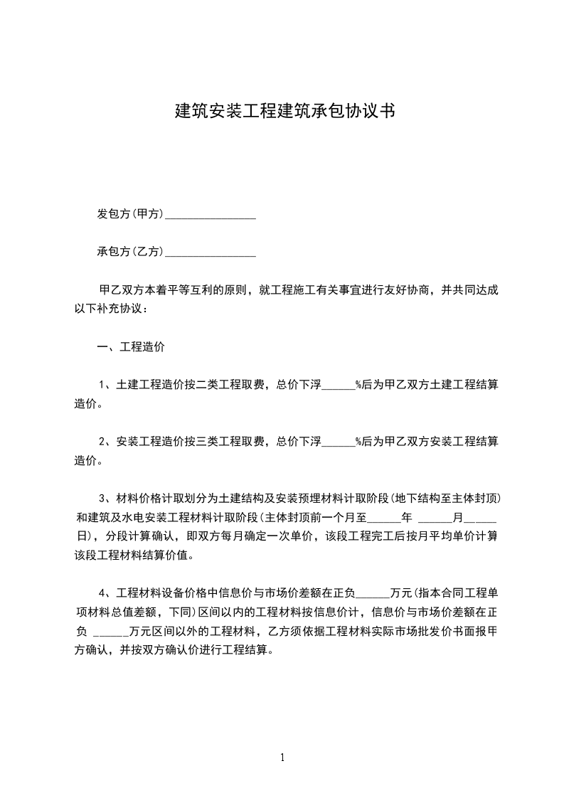2、安装工程造价按三类工程取费,总价下浮______%后为甲乙双方安装工程结算造价。