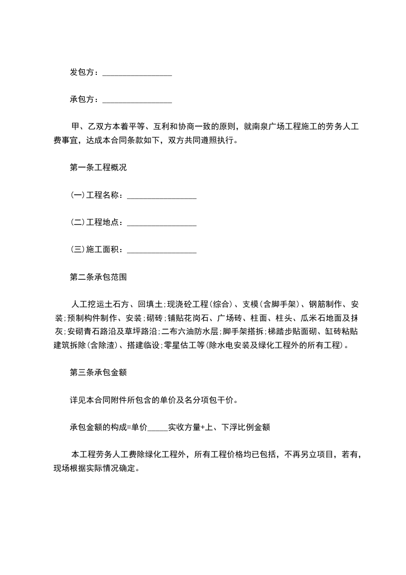 甲、乙双方本着平等、互利和协商一致的原则,就南泉广场工程施工的劳务人工费事宜,达成本合同条款如下,双方共同遵照执行。
