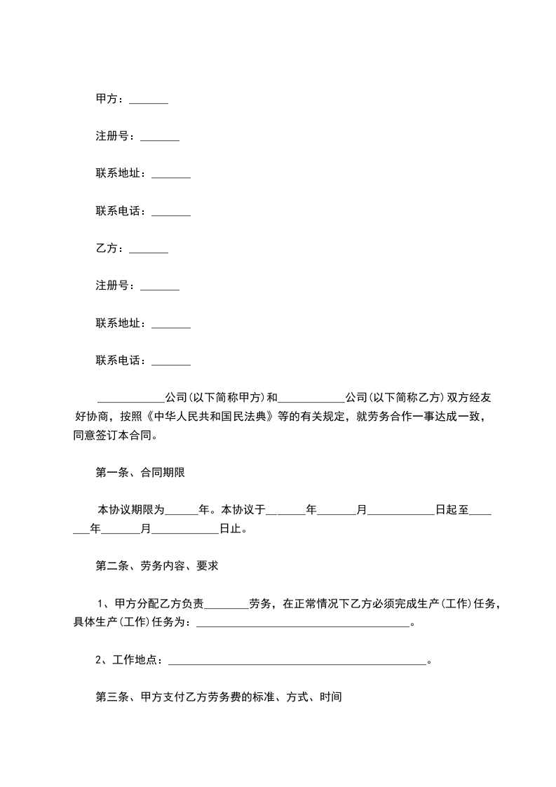2.甲方输出给乙方的劳务人员,为甲方员工,由甲方与劳务人员签订劳动合同,发放工资,并办理各项社会保险。