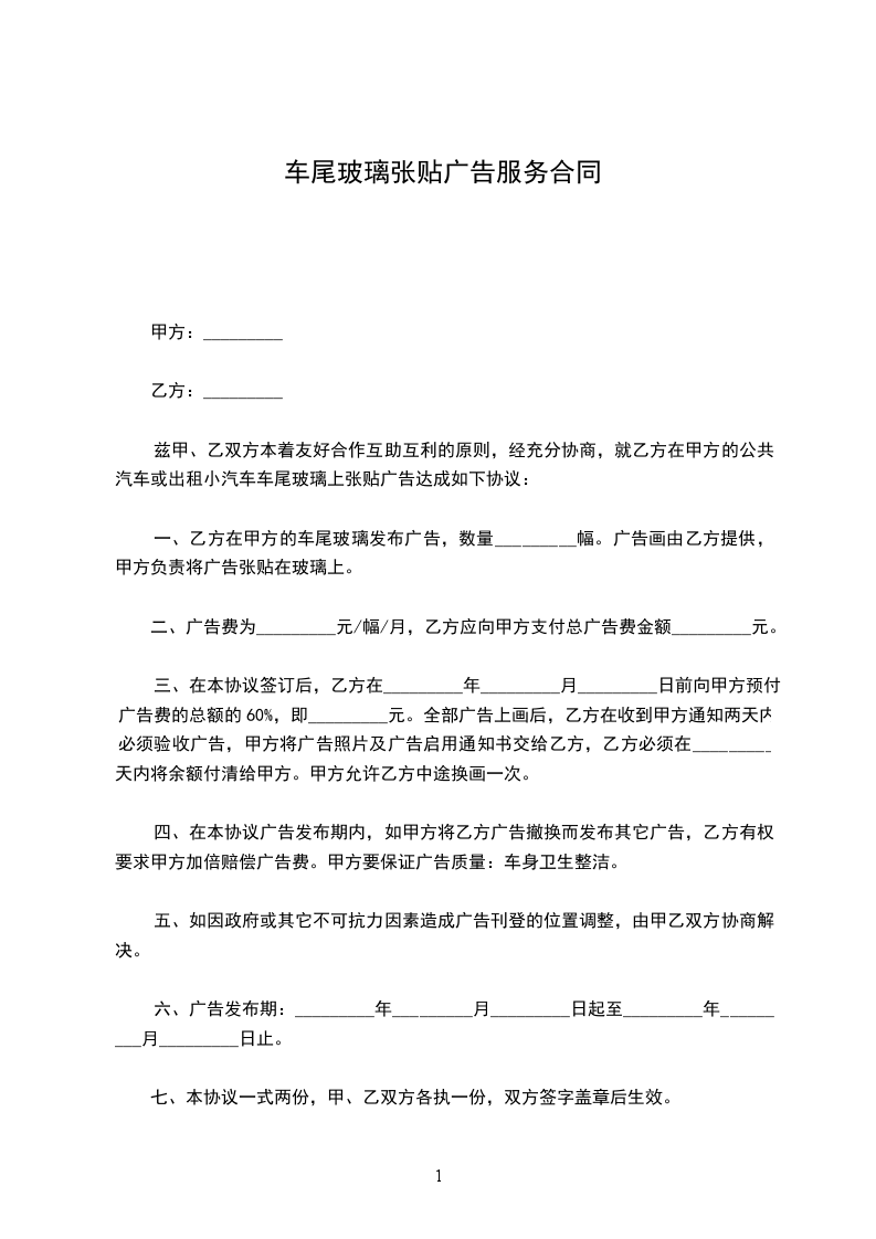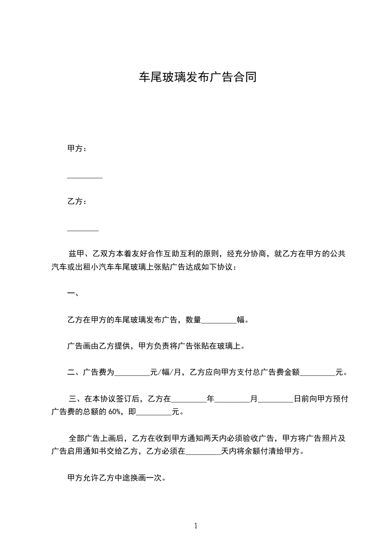 乙方在甲方的车尾玻璃发布广告,数量_________幅。